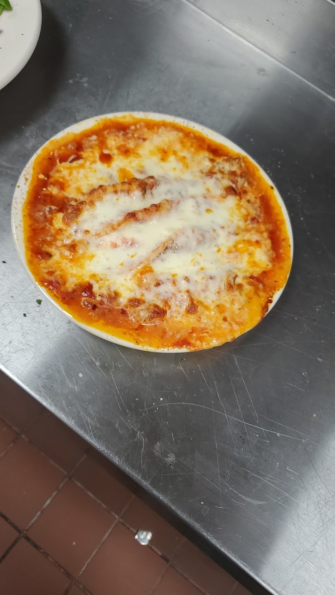 “ Wasn’t expecting the portions to be big but it was me and my husband got the dinner chicken parm with a Greek and Cesar salad just amazing! The girls upfront were friendly. We will come back when we take a trip back to the town ”